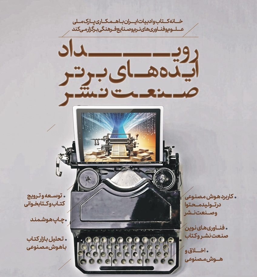 رویداد ایدههای برتر فناورانه در صنعت نشر با همکاری خانه کتاب و ادبیات ایران و پارک علوم و فناوریهای نرم و صنایع فرهنگی برگزار میشود.فراخوان این رویداد تخصصی در ۶ محور موضوعی «کاربرد هوش مصنوعی در تولید محتوا و صنعت نشر»، «فناوریهای نوین صنعت نشر و کتاب»، «اخلاق و هوش مصنوعی»، «توسعه و ترویج کتاب و کتابخوانی»، «چاپ هوشمند» و«تحلیل بازار کتاب با هوش مصنوعی» منتشر شده و مراسم اختتامیه آن، در آبان ماه برگزار میشود.
