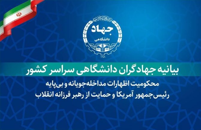 به گزارش روابط عمومی جهاددانشگاهی، در بیانیه جهادگران دانشگاهی در محکومیت اظهارات مداخلهجویانه و بیپایه رئیسجمهور آمریکا و حمایت از رهبر فرزانه انقلاب آمده است: