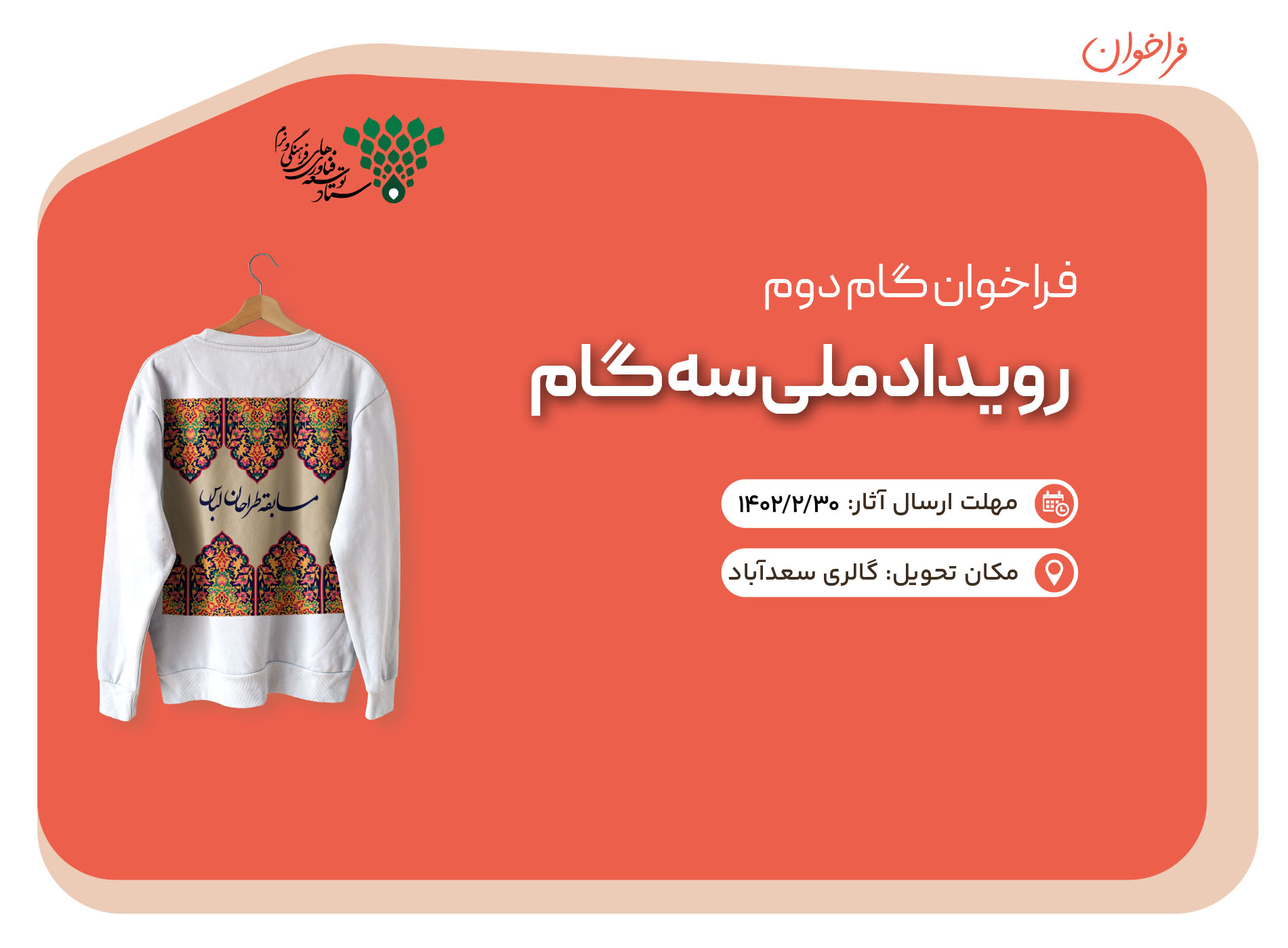 مهلت ارسال آثار به فراخوان مسابقه طراحان لباس گام دوم رویداد ملی سه گام تا تاریخ 30 اردیبهشت ماه 1402 تمدید شد. متقاضیان و علاقمندان جهت حضور و شرکت در رویداد میتوانند به وب سایت 3gam.rich.ir پژوهشگاه میراث فرهنگی مراجعه نمایند.