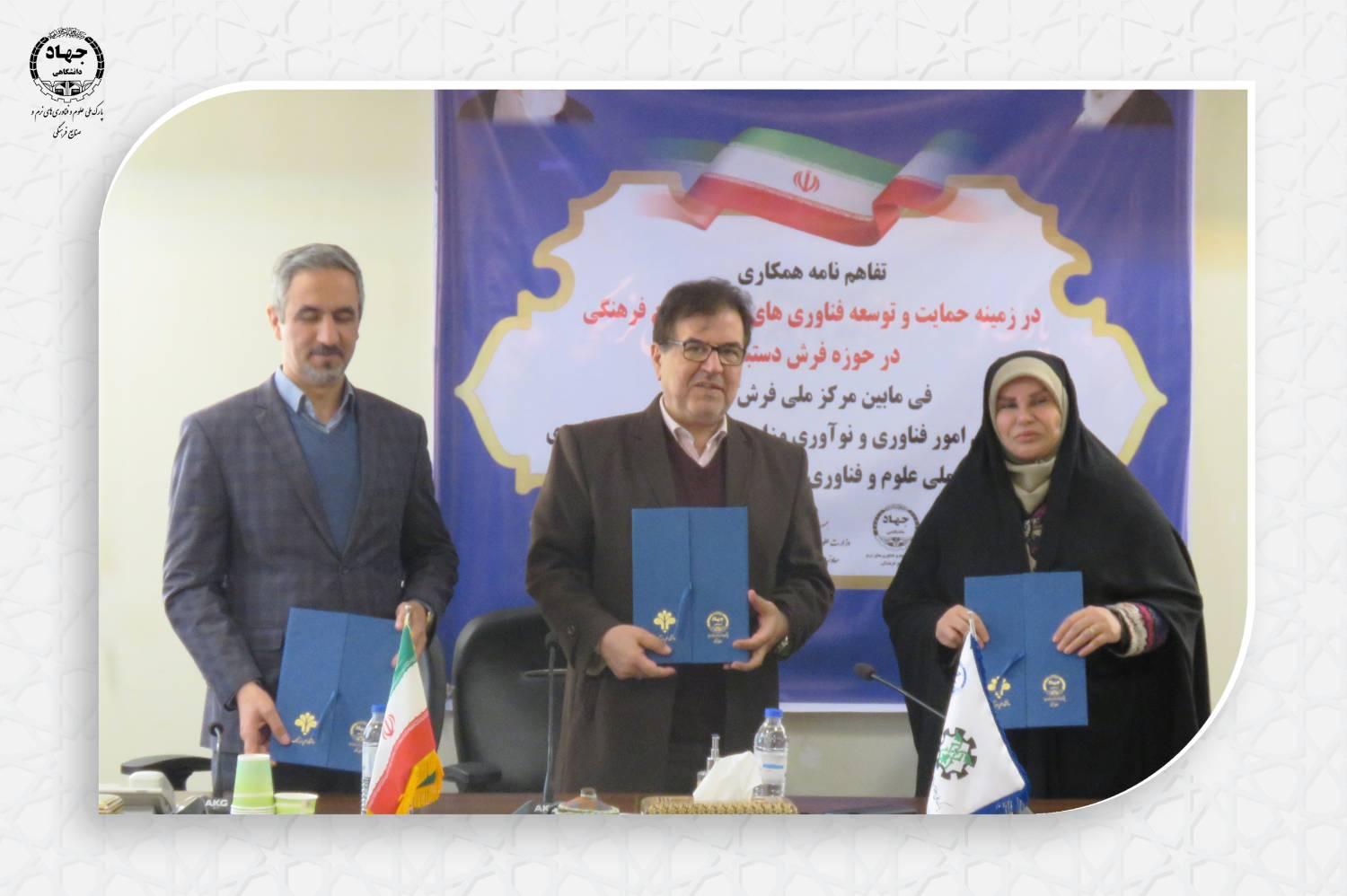گفتنی است، هدف از این تفاهم نامه،” حمایت از ایجاد مراکز رشد و مراکز کارآفرینی و نوآوری”،” طراحی و برگزاری رویدادهای مرتبط”،” حمایت از تجاری سازی صنایع فرهنگی و فناوری های نرم مبتنی بر دستاوردهای علمی و پژوهشی”،” برگزاری کارگاه ها، دوره های آموزشی و نشست های تخصصی در حوزه فرش دستبافت”،” همکاری در اخذ مجوز دانش بنیان و خلاق برای شرکت های فعال در حوزه فرش دستباف”،” بررسی میزان نیاز به فناوری های نوین توسط کارشناسان طرفین و برنامه ریزی جهت نیل به موارد اولویت دار”،” انجام امور مطالعاتی و امکان سنجی مورد نیاز”،” استفاده متقابل از کتابخانه ها و فیلم های عمومی” و” انجام بازدیدهای متقابل علمی برای هنرجویان و دانشجویان رشته فرش دستبافت” است