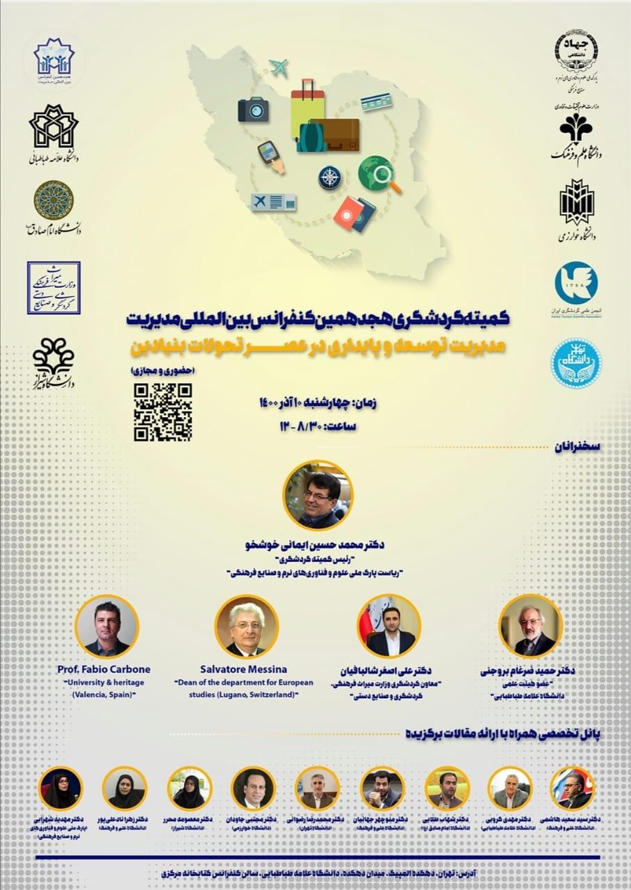 کمیته گردشگری هجدهمین کنفرانس بین المللی مدیریت در روز چهارشنبه 10 آذرماه ساعت 8.30 تا 12 با حضور اساتید، متخصصان و اندیشمندان داخلی و بین المللی برگزار می گردد. از علاقه مندان و پژوهشگران برای حضور در ساختمان کتابخانه مرکزی دانشگاه علامه طباطبایی و یا آدرس مجازی جلسه https://meeting.atu.ac.ir/ch/tc دعوت به عمل می آید.