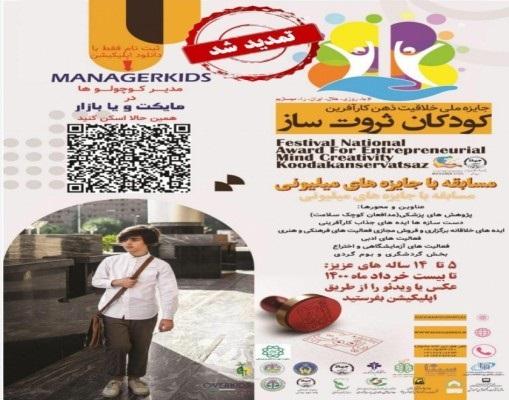 تمدید مهلت ارسال آثار به جشنواره جایزه ملی خلاقیت ذهن کارآفرین کودکان ثروت ساز
