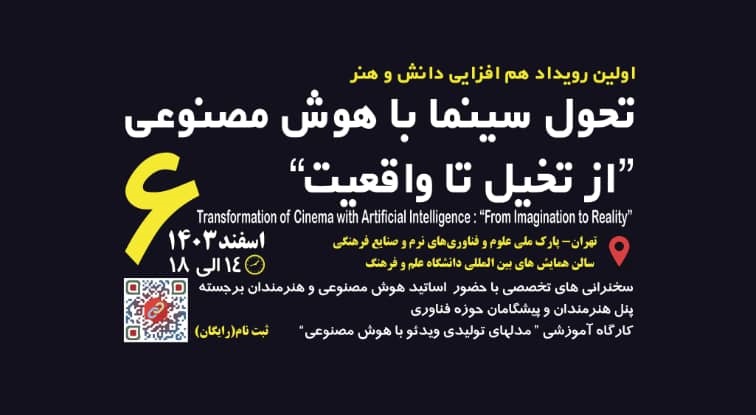 نخستین رویداد هم‌افزایی دانش و هنر تحت عنوان «تحول سینما با هوش مصنوعی از تخیل تا واقعیت» با هدف بررسی تأثیرات فرصت‌های فناوری هوش مصنوعی در صنعت سینما، 6 اسفندماه با حضور متخصصان و اساتید حوزه سینما برگزار می‌شود.