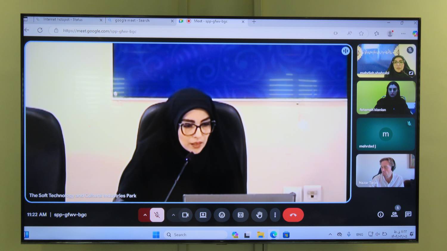 این جلسه با حضور دکتر مهدیه شهرابی فراهانی، مدیر امور همکاری های بین الملل پارک، آقای مهندس قاسم براتی، مدیر امور شرکتها های پارک، برگزار گردید، دکتر شهرابی فراهانی در ابتدا توضیح مختصری از پارک و فعالیت های پارک ارائه کرد. همچنین در ادامه به اهداف و روند برگزاری نمایشگاه کیش آی ویژن پرداخت.