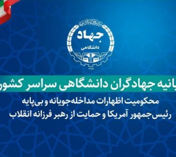 بیانیه جهادگران دانشگاهی در محکومیت اظهارات مداخله‌جویانه و بی‌پایه رئیس‌جمهور آمریکا و حمایت از رهبر فرزانه انقلاب