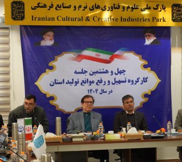 چهل‌وهشتمین جلسه کارگروه تسهیل و رفع موانع تولید استان تهران در سال ۱۴۰۴، با حضور دکتر حشمت‌الله عسگری معاون هماهنگی امور اقتصادی استانداری تهران، دکتر محمدحسین ایمانی خوشخو رئیس دانشگاه علم و فرهنگ و پارک ملی علوم و فناوری‌های نرم و صنایع فرهنگی، و جمعی از مدیران و مسئولان کشوری و استانی، در محل پارک ملی علوم و فناوری‌های نرم و صنایع فرهنگی صبح روز ۳۰ دی‌ماه برگزار شد. ... ادامه مطلب
